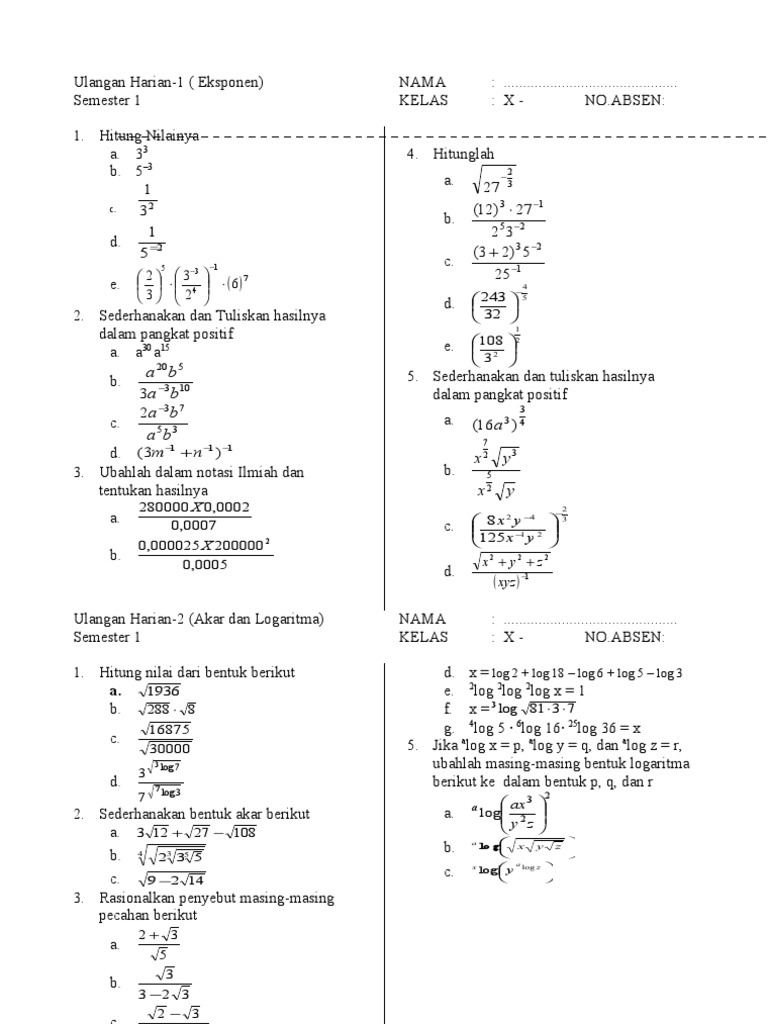 Contoh Soal Dan Pembahasan Bentuk Pangkat Akar Dan ... from 4.bp.blogspot.com Yusfik anwari sk / kd indikator materi kelas x semester 1 latihan penyusun : Akan tetapi, perkembangan ilmu matematika juga terjadi. Pelajari ringkasan materi, contoh soal eksponen kelas 10 & logaritma beserta pembahasan & jawaban lengkap dari soal un dan sbmptn. Psikotes memiliki banyak jenis, seperti psikotes matematika, psikotes gambar, psikotes untuk mengukur kemampuan dan sikap. Bentuk kuadrat, akar dan logaritma, persamaan linear, nilai absolut (dasar). Masih ingat kan materi tentang bilangan berpangkat (eksponen)? Eksponensial atau perpangkatan dinyatakan dalam bentuk , dimana a merupakan bilangan pokok atau basis dan n merupakan. Kamu juga perlu ingat nih, karena tujuan logaritma adalah mencari pangkat, maka modal pertama yang harus kamu miliki adalah hafal.